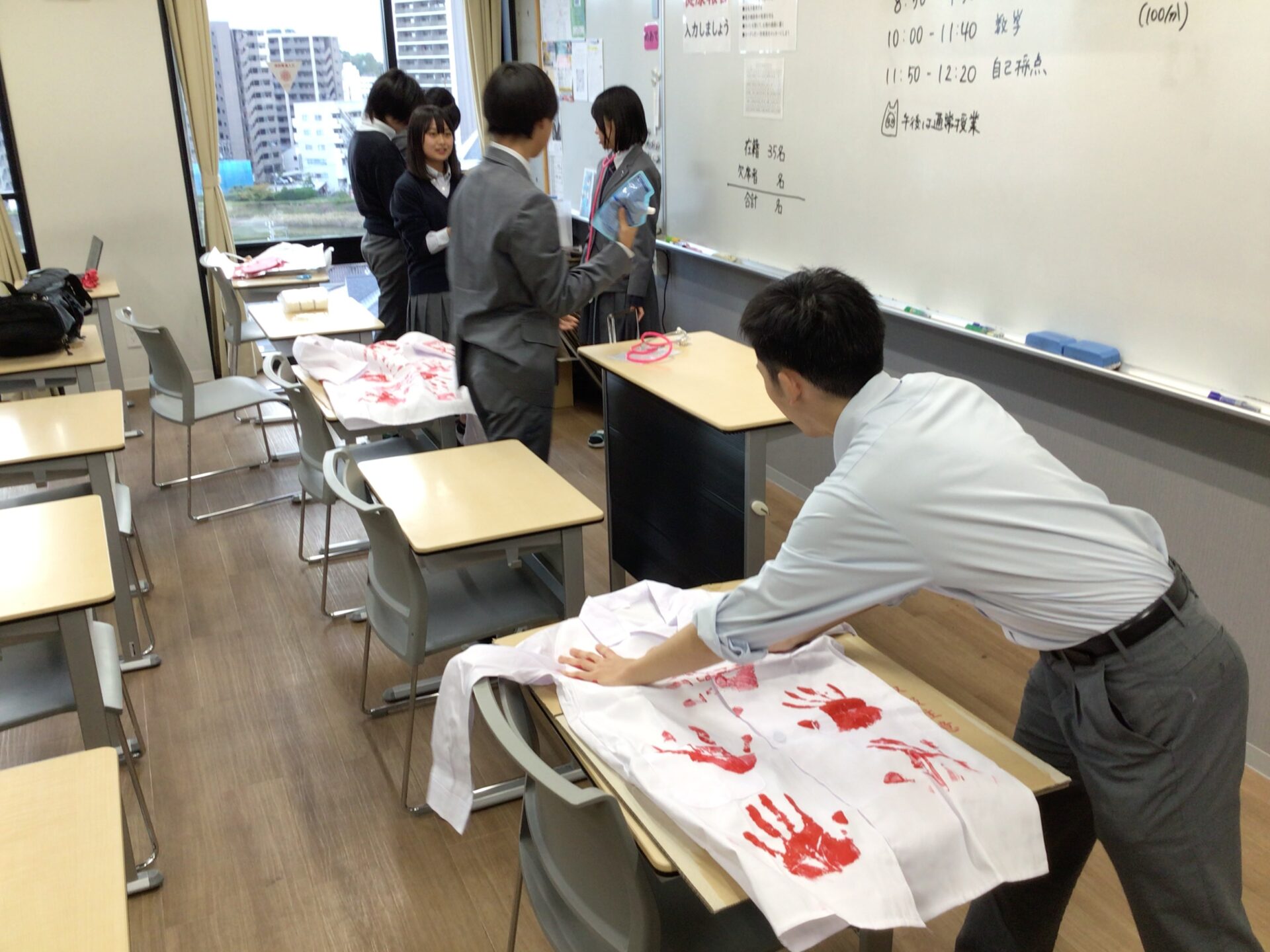 本日、高校2年生は記述模試を受験しました。今日は理科、公民、国語、英語がありました。生徒たちはクタクタになっていましたが、放課後にお楽しみの時間が待っていました。文化祭準備です。