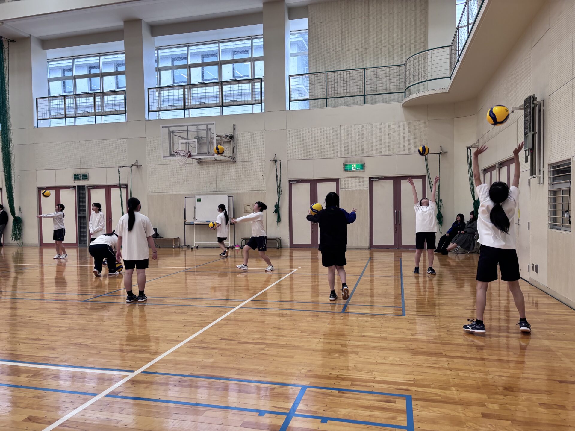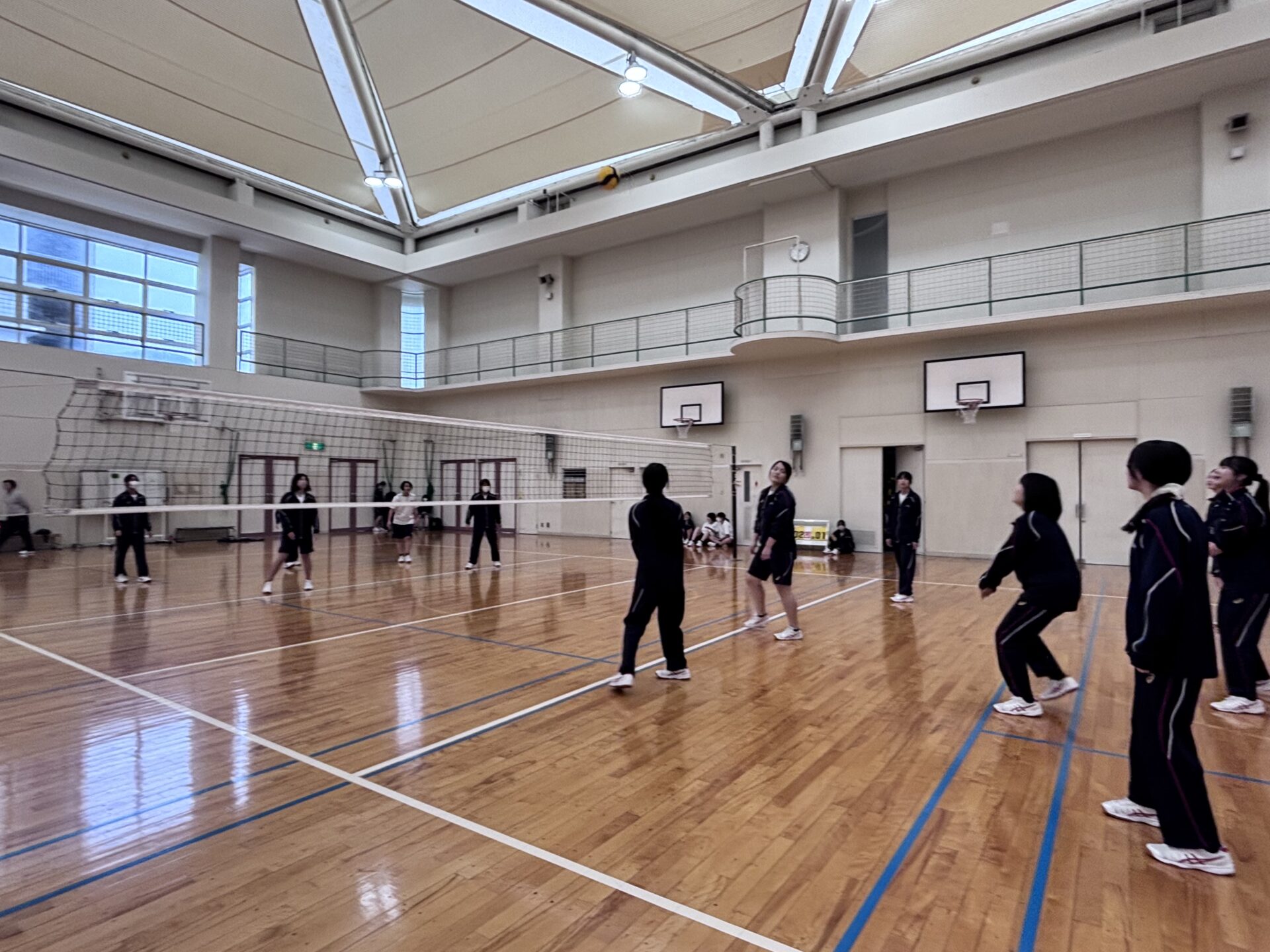 本日の体育の授業では、高校1年生・3年生ともにバレーボールの授業を行いました。
