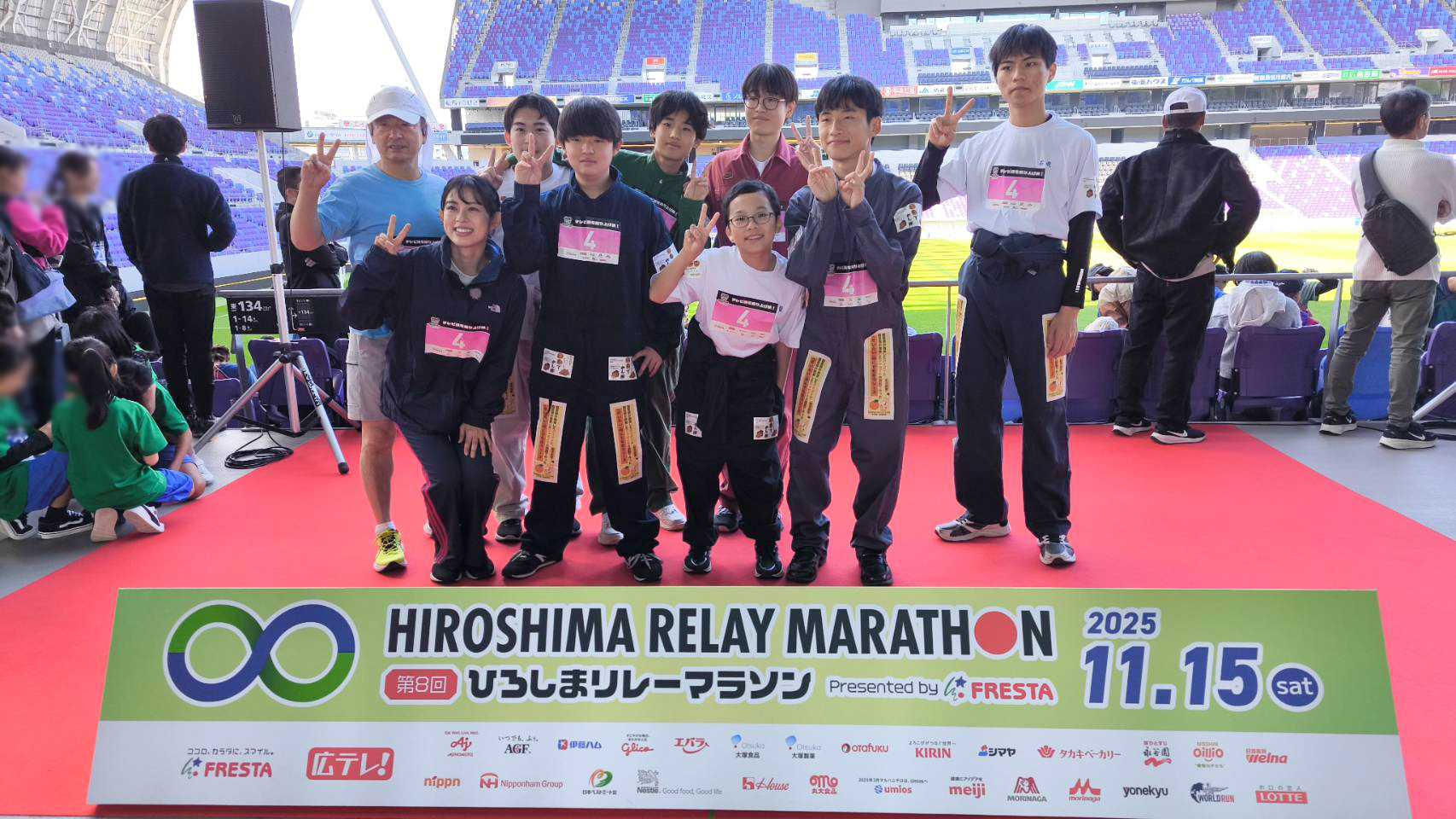11月15日(土)、園芸部男子部員7名が『ひろしまリレーマラソン2025(会場:エディオンピースウイング広島)』に出場しました。ジャガイモ栽培を通して交流を深めた広島テレビ番組『テレビ派』のスタッフの方から