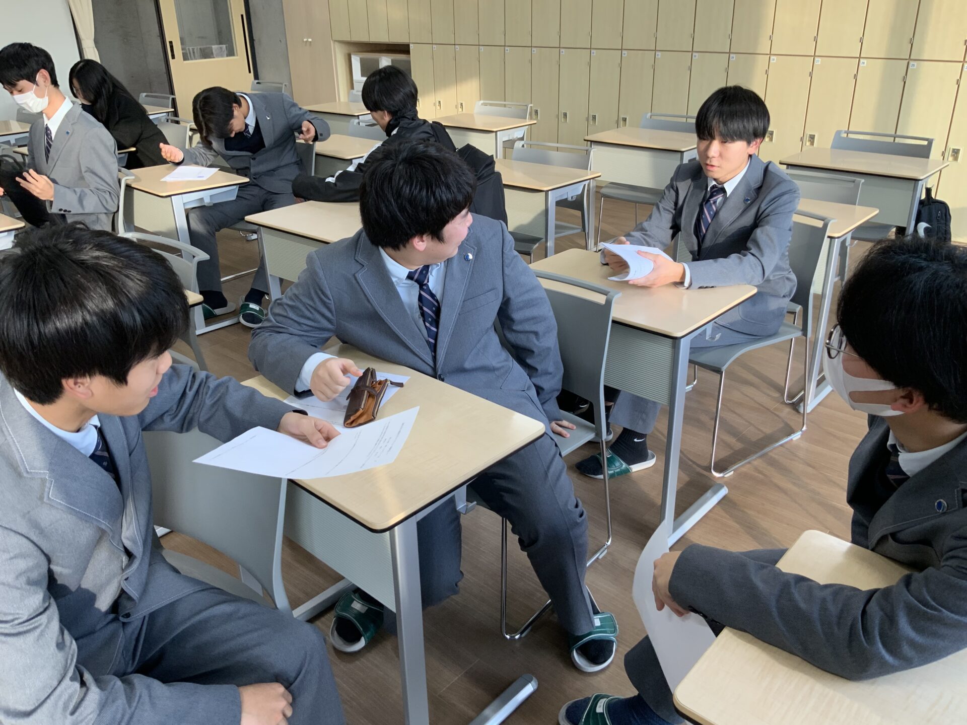 期末試験も終わり、今日から各班ごとに教員の指導のもと、ポスターの作成に取り掛かり始めました。