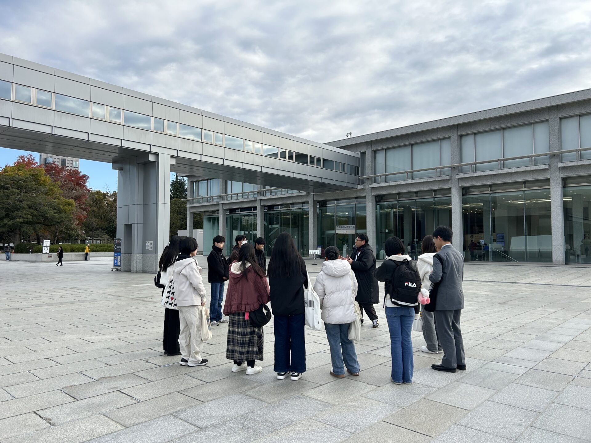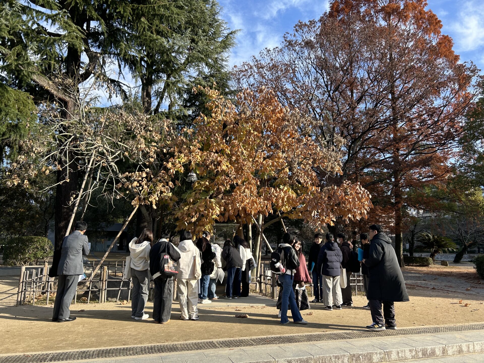 来年度、後輩である本校中学生をツアーガイドすることを最終目標に、実際のベテランガイドさんからアドバイスを頂きながら研修を重ねてきた高1有志の会。まずは1月17日(土)に高1学年全体の仲間を案内すべく、その下見として実地研修を行いました。自分たちが案内・説明したい碑を選び、その説明やクイズをまとめた一冊のガイドブックをそれぞれ片手に、碑を巡りながら時間配分や説明事項の確認。気を付けるべき点やここは伝えたいという思いなどを再確認し合い、イメージを固めました。年が明けてもう一度実地研修を経て、いよいよ