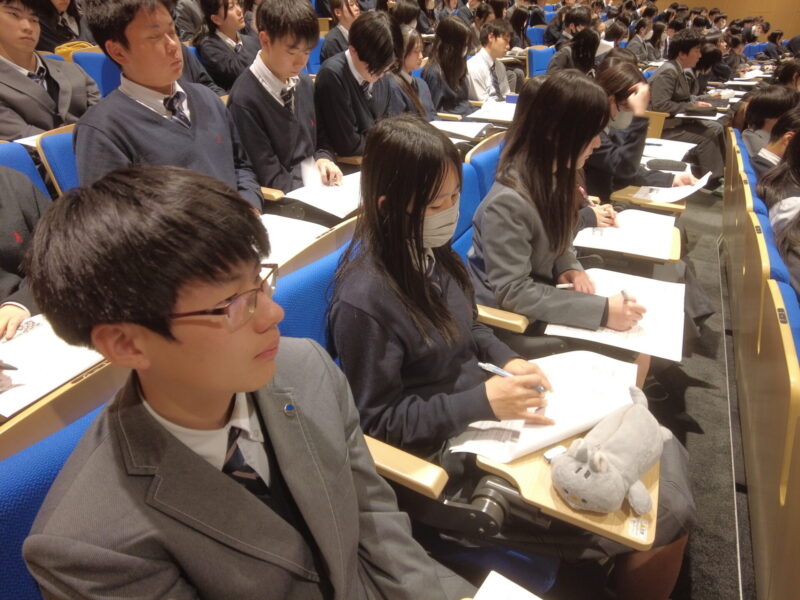 また、特に印象的だったのが、「選択肢を増やそう!つくろう!決して選択肢を狭めることはしないで!」というメッセージでした。日々の授業への向き合い方一つひとつが、将来の選択肢につながっていくというお話です。授業をしっかり聞くこと、学ぶ姿勢を大切にすることは、自分自身の可能性を広げる行動です。