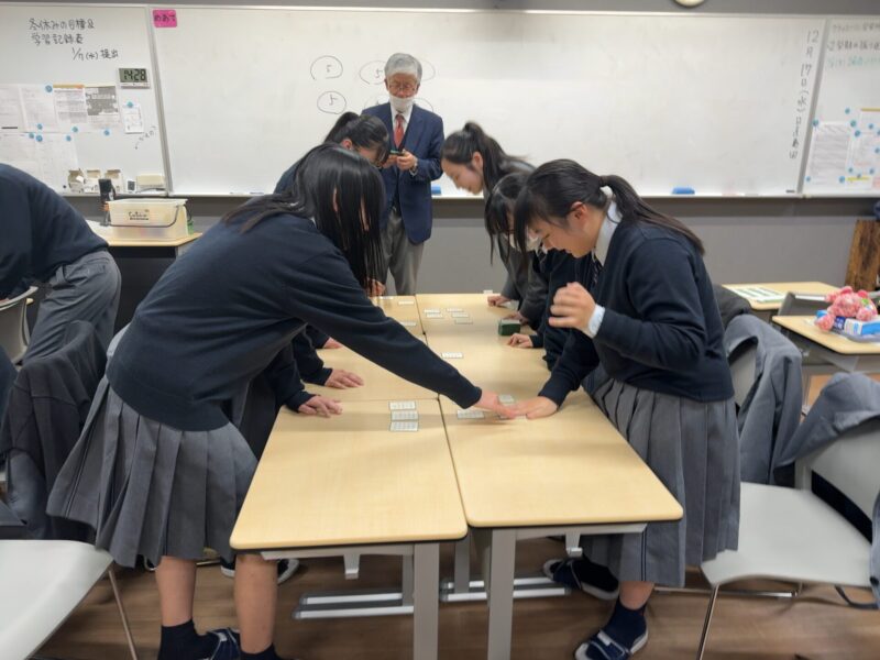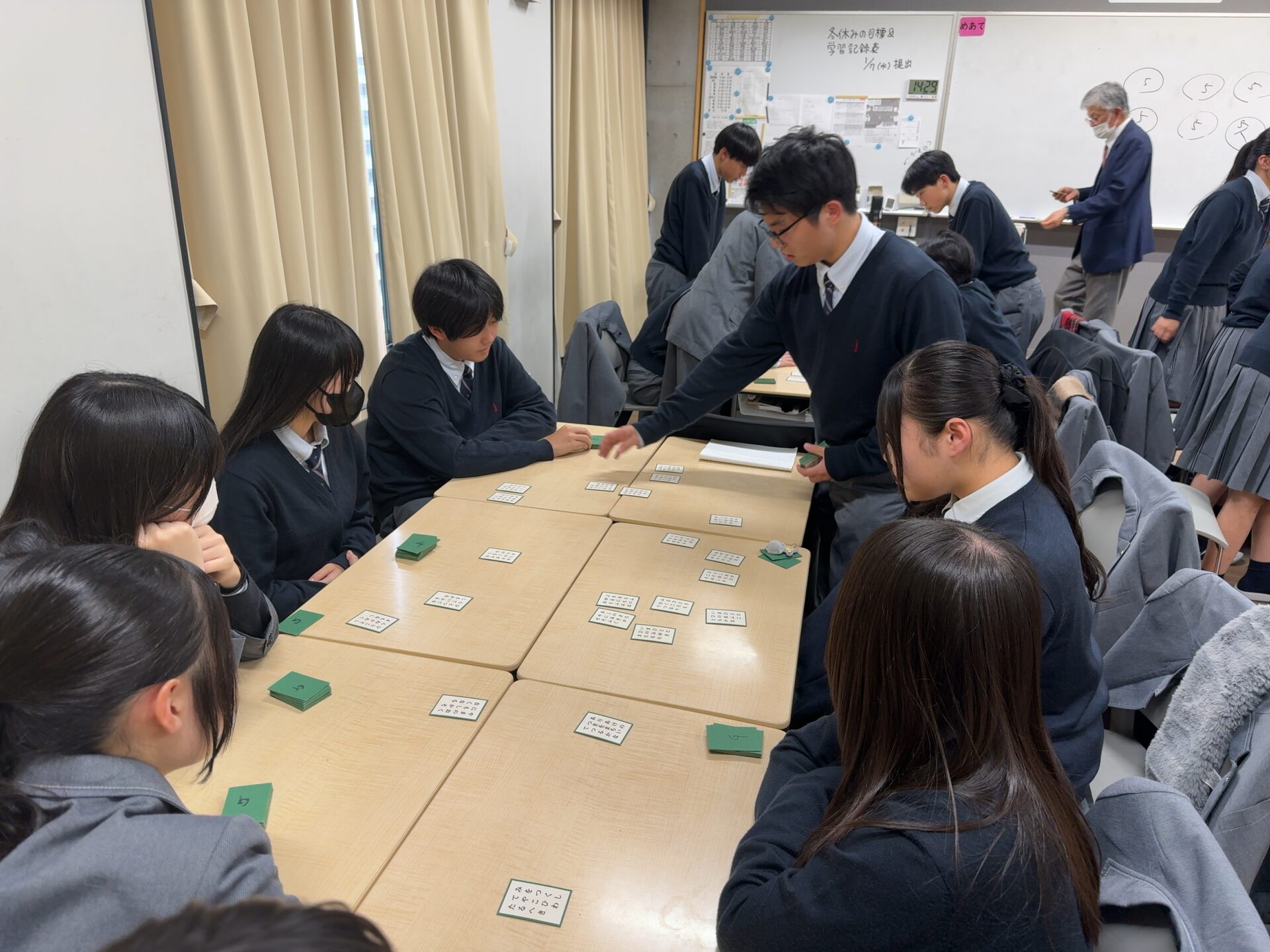 2025.12.17 学修 担当:折田 あさき夢見し 今日の午後、高校1年生のクラスがある階を散歩しているとなんだか気合の入った声が聞こえてきました。そのクラスを覗いてみると、国語の授業で百人一首をしていました。いくつかのグループに分かれて対戦していましたが、白熱した試合を展開しているところもありました。以前は校内で百人一首大会をしていたのですが、コロナを機に行事がなくなっていました。久しぶりに見て、とても懐かしく思える光景でした。 2023年高校ブログはこちら 2022年高校ブログはこちら