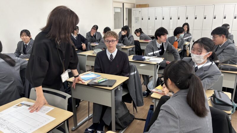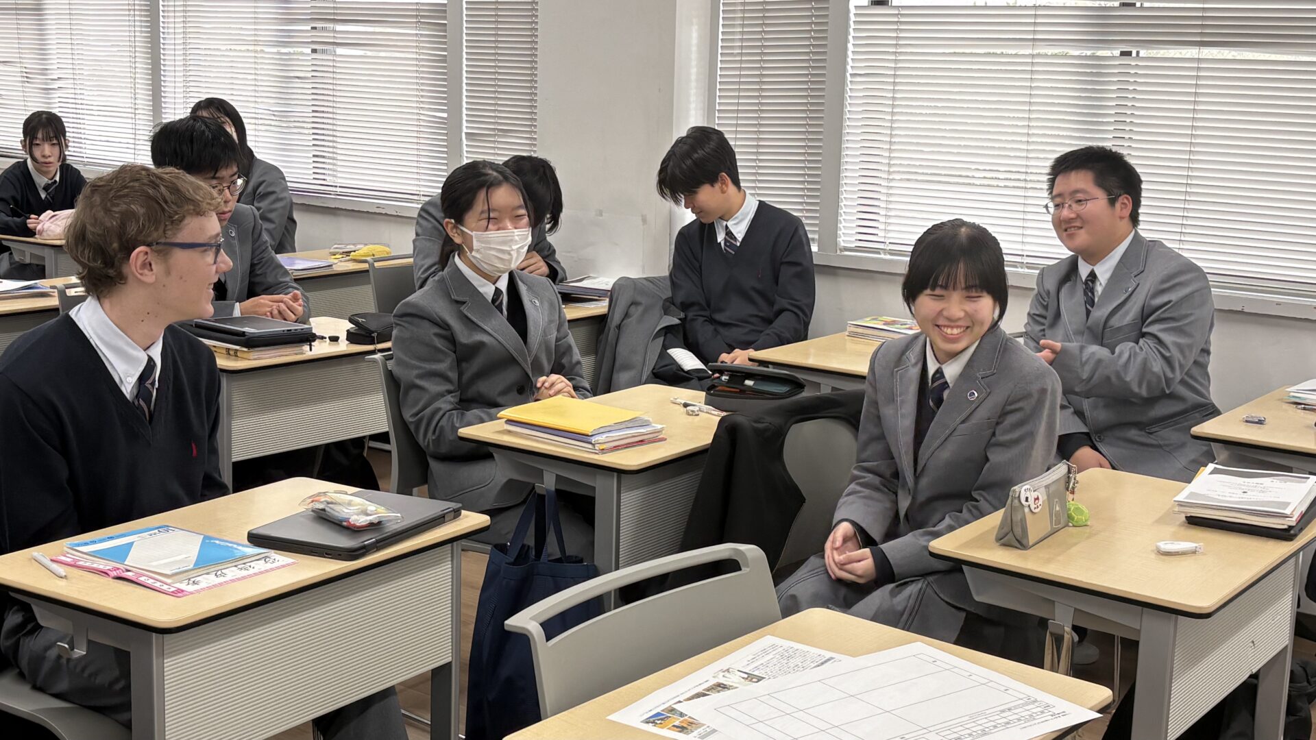 ペアでの活動のあとには、数名の生徒がクラス全体の前で年末年始の思い出を発表。留学生の Jack も参加し、「おせち料理」について日本語と英語を交えながら熱いディスカッションが繰り広げられ、教室はさらに温かな空気に包まれました。
