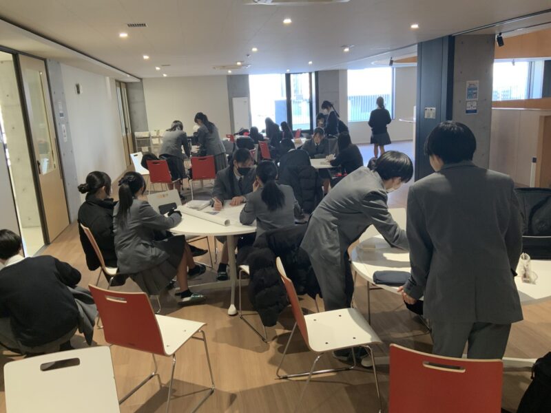 1月26日のLHRの授業では実際に発表の練習を行います。そこに向けて、各班がポスター作成に大急ぎで取り組んでいます。