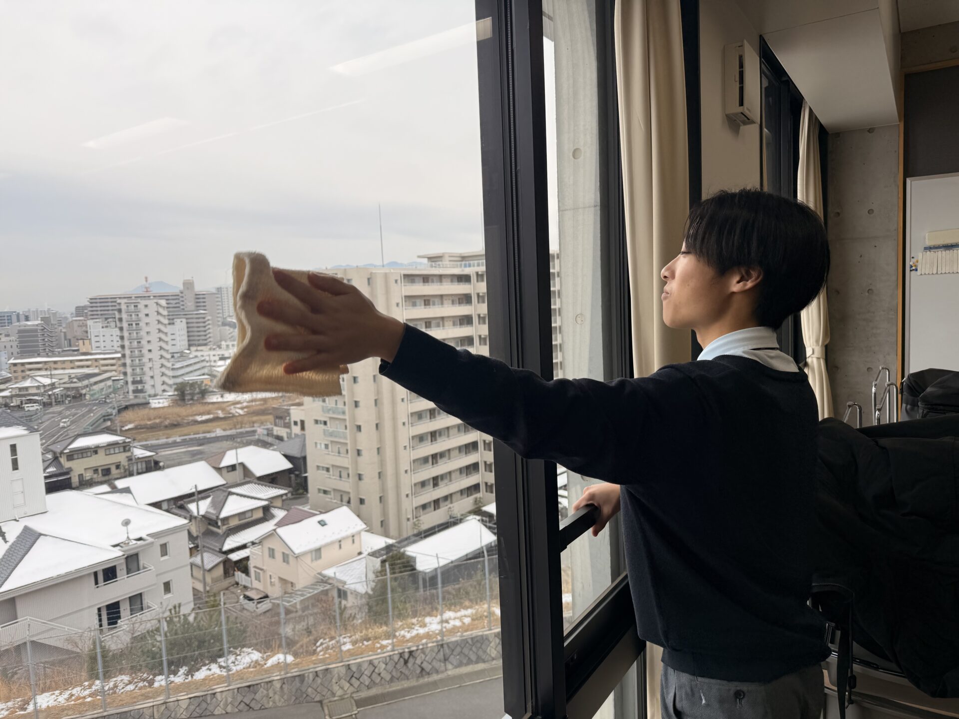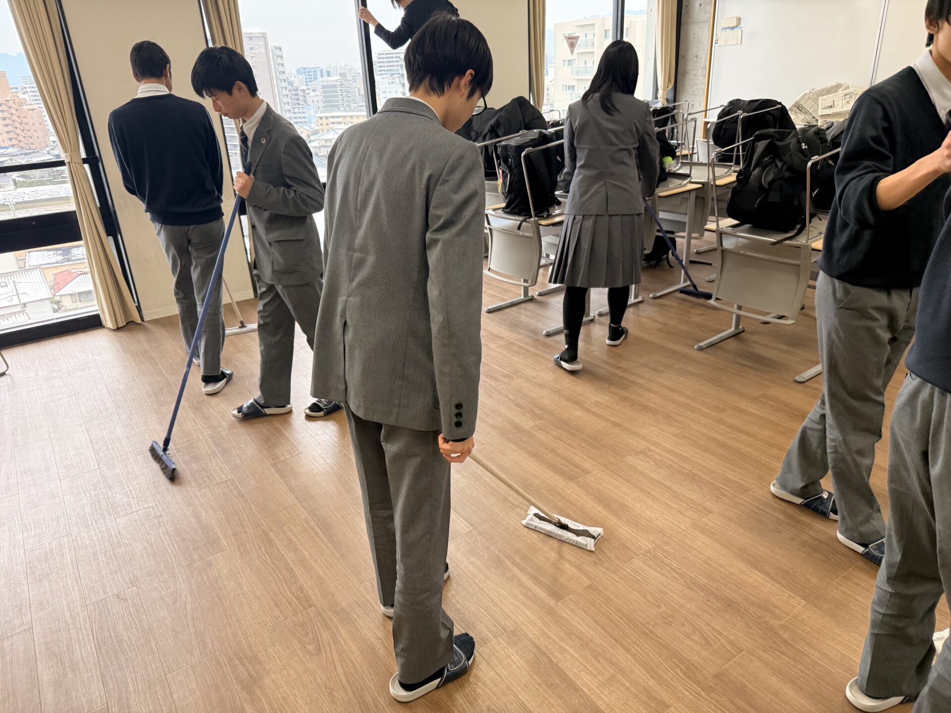 普段何気なく使っている場所も、改めて丁寧に清掃することで、学校全体が引き締まった印象になります。机や椅子の配置を整え、床や窓をきれいにすることで、落ち着いて試験に臨める空間づくりを意識しました。
