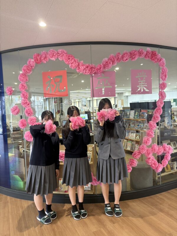 卒業生の皆さんが、このフォトスポットで仲間や先生方と素敵な一枚を撮り、 高校生活の大切な思い出をまた一つ増やしてくれることを願っています。 図書委員の皆さん、素敵な企画をありがとう。