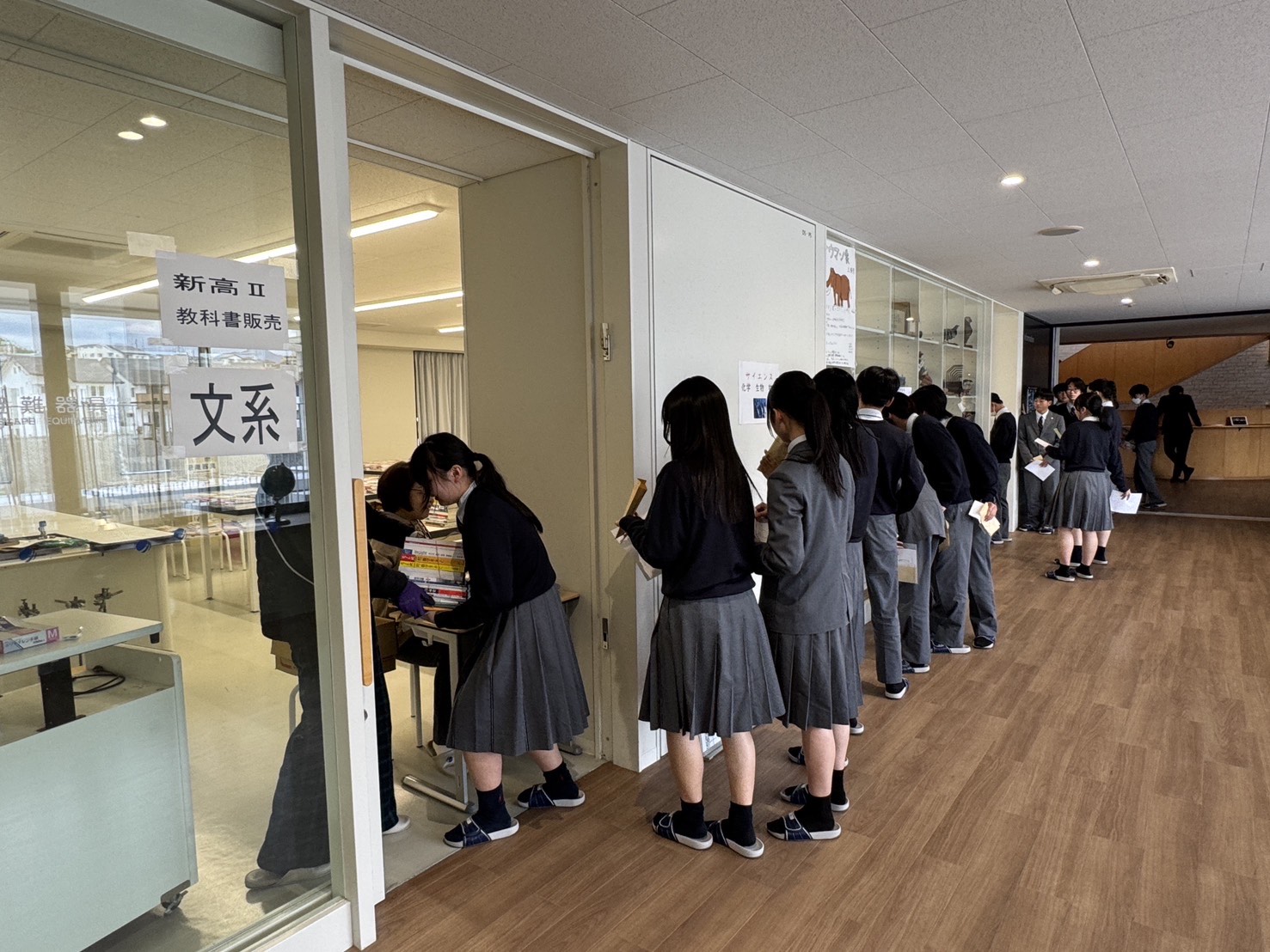3月の初週、高校生の教科書販売がありました。生徒たちは指定された場所で、教科書をまとめて受け取ります。両腕いっぱいに抱えるその姿は、毎年見られる光景ですが、やはり印象的です。冊数も多く、持ち上げた瞬間に思わず表情が変わる生徒もいました。