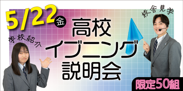 5月22日(金)夕方より、中学生・保護者の皆さまを対象に「イブニング説明会」を開催します!